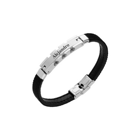 PULSERA DE PIEL NEGRA Y NYLON DEPORTIVO ACERO 316 L