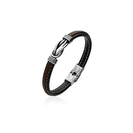 PULSERA INFINITO MAGNUM PIEL NEGRA Y MARRÓN ACERO 316 L