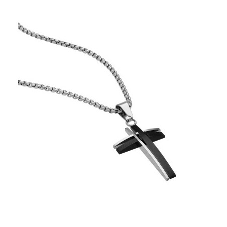 COLLAR CRUZ BLACK DOBLE ACERO 316 L