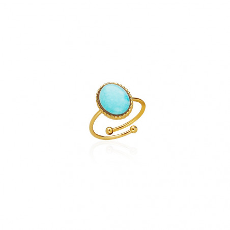 Anillo Oval Turquesa Acero 316 L. Acabado chapado en Oro 18 Klt. Medida ajustable. Medidas turquesa: 12 x 8 mm.