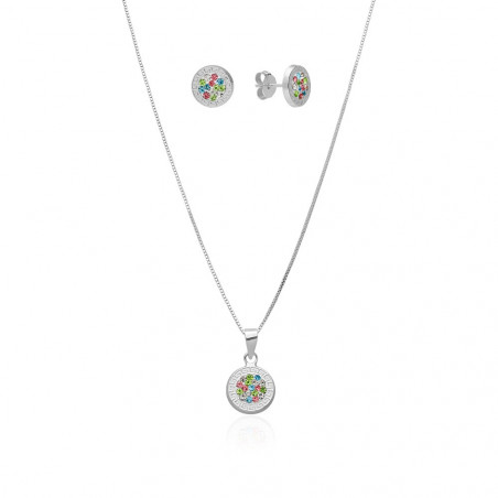 Conjunto Greca Multicolor Plata Ley 925