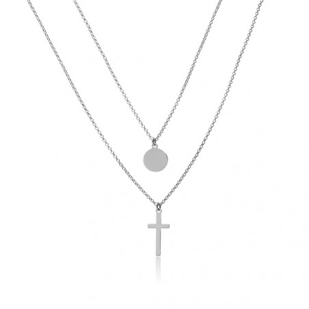 Collar Doble Cadena Cruz y Circulo