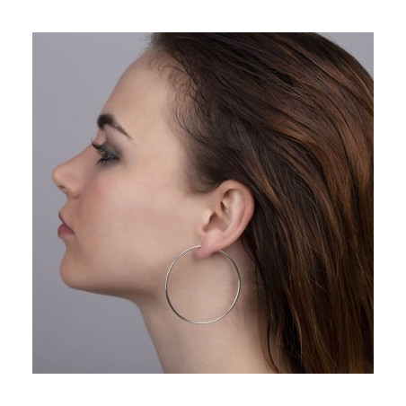 Pendientes Aros de tubo liso hueco en Plata de 1ª Ley 925 mm. Acabado pulido. Cierre criolla. Diámetro 55 x 1,5 mm.