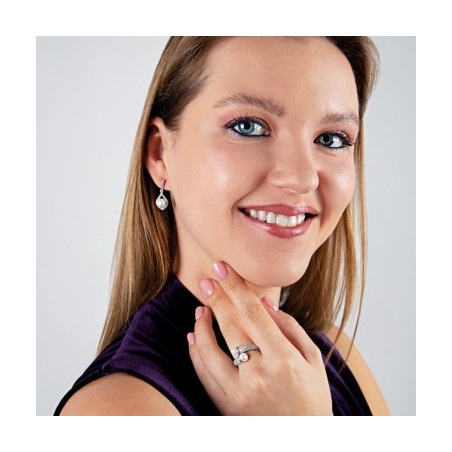 Anillo Tú y Yo con dos Perlas naturales y pavé engastado en circonitas cúbicas. Medida ajustable.
