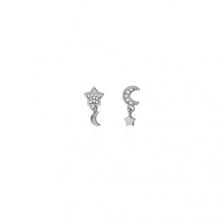 Pendientes Lunas y Estrellas. Circonitas. Cierre presión. Medidas 12 x 6.5 mm