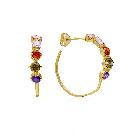 Pendientes Paradise. Plata Chapada Oro. Circonitas Cúbicas facetadas en diversos colores. Cierre Presión. 33 x 35 mm.