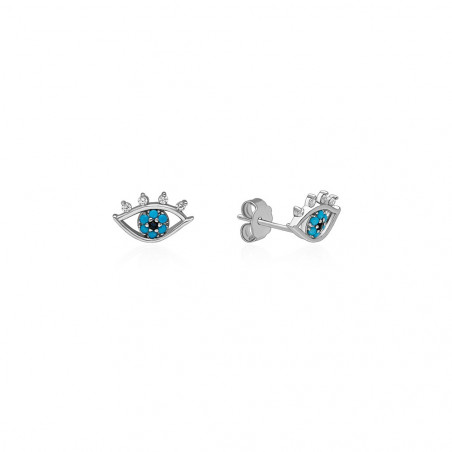 Pendientes Ojo Turco. Turquesas y circonitas. Cierre presión. Medidas 11 x 7 mm.